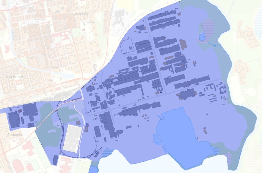 Vissa ytor inom industriområdet är klassade som arbetsområde/förbudsområde.